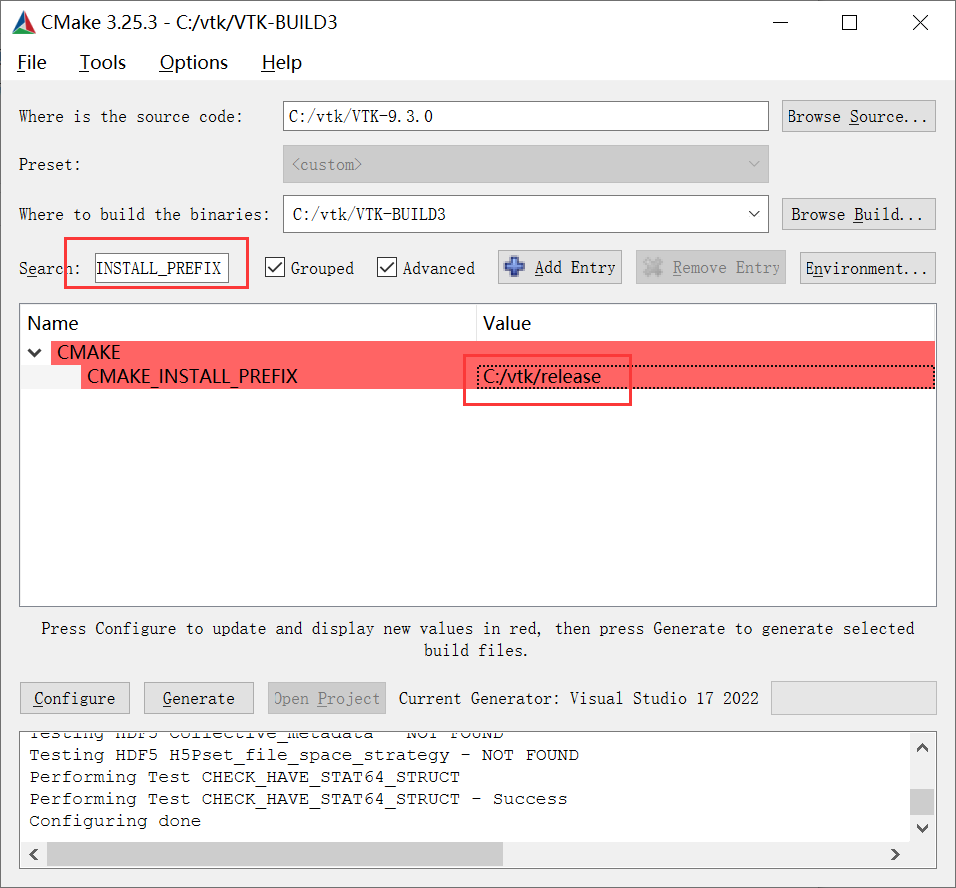 搜索CMAKE_INSTALL_PREFIX,输入你要输出编译结果的文件夹