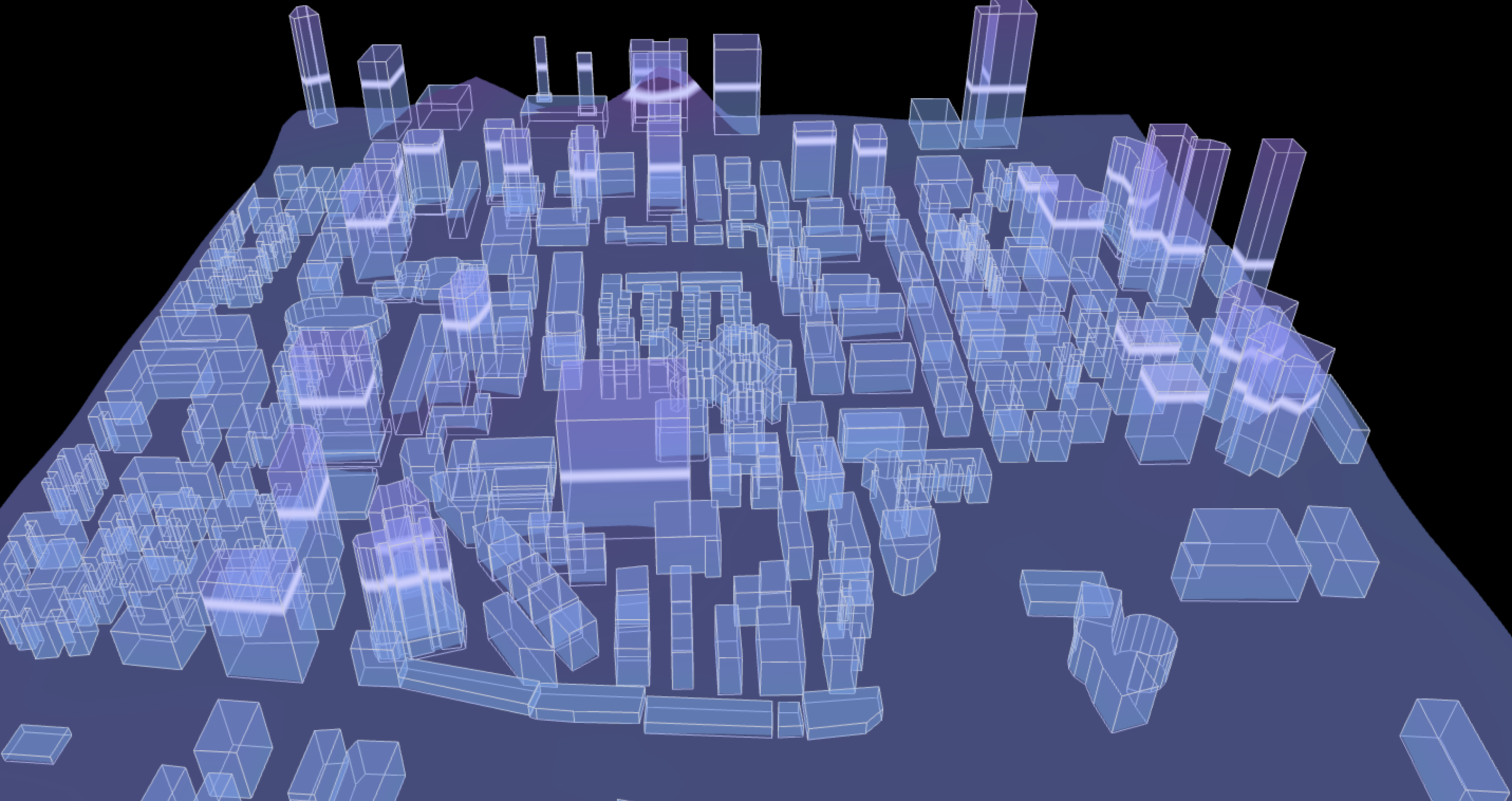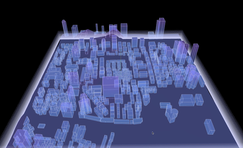 首先我们给模型添加颜色,自下而上渐变,并且让模型有透明感。为此我们需要设置两个颜色,并进行插值计算,而插值的比例就是 顶点y坐标 / 模型高度 ,即对两个颜色进行线性插值,从而实现模型底部到顶部的颜色渐变。