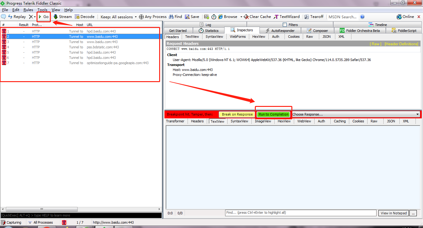 点击Run to completion或导航栏上的Go继续请求。